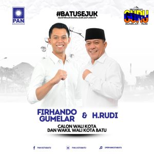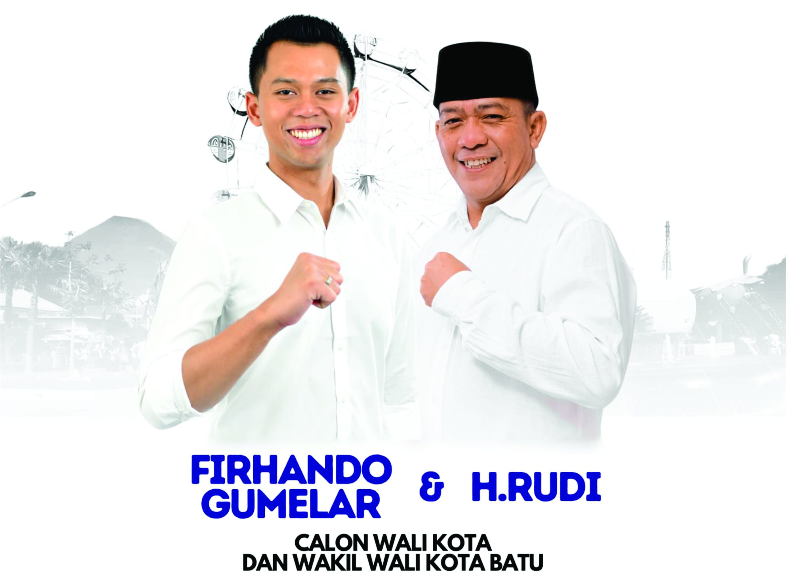 Firhando Gumelar dan H. Rudi adalah pasangan yang memegang janji besar untuk masa depan Kota Batu. Dengan semangat inovatif Firhando dan kebijaksanaan Rudi, mereka menawarkan visi yang menyegarkan dan penuh harapan.