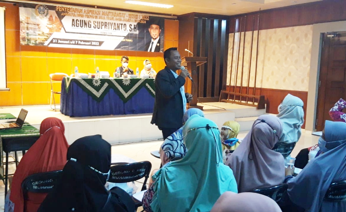 Agung mengatakan itu saat menggelar reses serap aspirasasi masyarakat Kecamatan Sukosewu, Kecamatan Kedungadem, dan Kecamatan Kanor, Bojonegoro, Minggu (6/2/2022). Hal yang sama juga disampaikannya saat menemui konstituen di Gedung Dakwah Muhammadiyah, Bojonegoro, dan Perguruan Muhammadiyah, Kecamatan Kapas, Sabtu (5/2/2022).