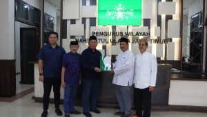Di PWNU, rombongan DPW PAN PAN Jatim yang dipimpin Husnul Aqib mendapat kenangan-kenangan buku dari KH Taufik Mugni.